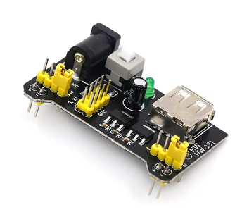 Regulador compacto que proporciona voltajes de 3.3V y 5V, ideal para alimentar tus proyectos electrónicos directamente en una protoboard. Se alimenta mediante un puerto micro USB o un conector jack de 6.5-12V, y es compatible con la mayoría de las protoboards estándar.